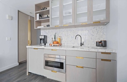Stay at our BRAND NEW Classic King Studio at 17John! Welcome to your home away from home in the heart of the Financial District with a fully equipped 340 sf apartment! Our modern accommodations offer the perfect blend of comfort, convenience, and city living. You’ll find everything you need just steps away. There’s a CVS conveniently located on-site for all your essentials, and multiple grocery stores are within a 2-minute walk, making it easy to stock up for your stay. Whether you’re preparing meals in your fully equipped kitchen or grabbing a quick snack, you’re always covered. Enjoy a stunning Manhattan view from our rooftop, or relax in the lounge on the seventh floor. The 9/11 Memorial & Museum is a must-see breathtaking tribute, only a five-minute walk away. Grab dinner at South Street Seaport or admire the historic ships. Find iconic monuments and stunning mid-century architecture on every block. Beyond the essentials, the neighborhood is a treasure trove of iconic landmarks, world-class dining, and cultural attractions. With excellent subway access at Fulton Street Station, you’re perfectly positioned to explore all of New York City. Whether you're here for business or leisure, 17John is your gateway to the best of NYC.