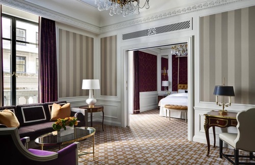Stay comfortably in Midtown New York at this 1-bedroom 2 Bath @ 830 Sq ft suite within the St. Regis Hotel. This superb property offers a cozy full service retreat for guests. The bedroom features a king bed with a queen pull out bed in living room. The two full bathrooms include a jetted bathtub and a showers. Also includes small kitchenette and 24 hour in room dining. Stay connected with WiFi and enjoy the convenience of amenities like concierge support, in room dining, daily housekeeping, an expansive fitness room.
