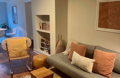 Garden Level 1BR apartment for short term stays during the second half of December and all of January, Feb and March- 3 night minimum, can consider nightly discount for longer stays up to one month +! Perfect space to enjoy the holidays if traveling to NYC or coming for work and in need of a fully furnished space with all the comforts and amenities of home with Brooklyn charm! Comes with pull out sofa - could accommodate 3-4 people + infant pack and play/crib if needed.