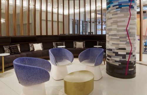 The residences are inspired by the city itself, with mid-century modernism serving as the design avenue. The color palette creates a cohesive aesthetic and the perfect backdrop for your stay. Every room boasts a very comfortable bed, 4K smart TV, and an elevated dedicated work space.