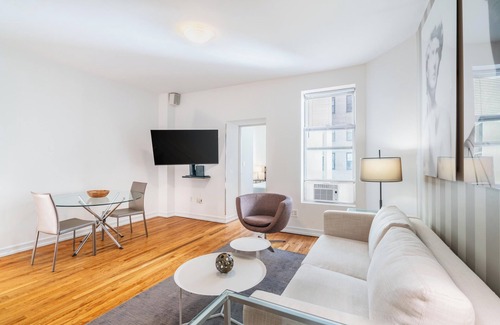 This one-bedroom apartment is located in a turn-of-the-century walkup on a beautiful residential block on Manhattan's Upper East Side. Curated with comfort in mind and contemporarily styled, this pet-friendly apartment features hardwood floors, while the building offers convenient on-site laundry facilities. All beds provided are fitted with plush linens and pillows. All Furnished Quarters apartments include 24/7 guest service.