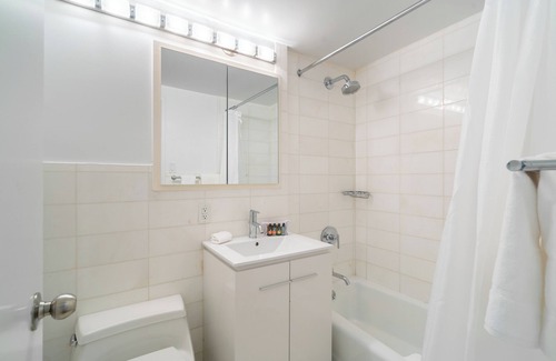 This beautiful two-bedroom located in a classic 1950s high-rise in Murray Hill features an open layout, hardwood floors, large closets and a newly renovated white marble bathroom. The apartment also offers a stainless steel full-sized kitchen with granite countertops and large windows. Building amenities include a state-of-the-art fitness facility, doorman coverage, attached garage and on-site laundry room. All beds provided are fitted with plush linen sheets and pillows. All Furnished Quarters apartments include 24/7 guest service.